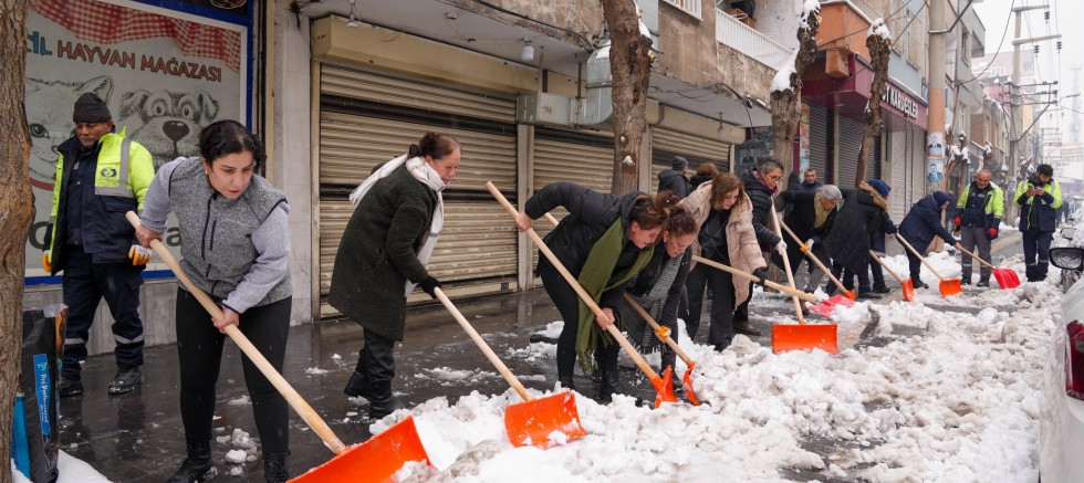 Belediyeden yapılan açıklamada, yerel yönetim anlayışlarının temelinde yer alan katılımcılık, dayanışma ve eşitlik ilkeleri doğrultusunda, kadınların kar sonrası kent genelinde sürdürülen çalışmalara sahada aktif biçimde eşlik ettiği ifade edildi. Özellikle Nükhet Coşkun Caddesi’nde gerçekleştirilen çalışmalarda, kaldırımların kadın emeğiyle temizlenerek yurttaşlar için daha güvenli hale getirildiği belirtildi.