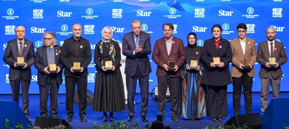 Memnuniyetle müşahede ettiği bir hususu katılımcılarla paylaşmak istediğini dile getiren Cumhurbaşkanı Erdoğan, "2014'ten bu yana geleneksel olarak her yıl sahipleriyle buluşturduğumuz Necip Fazıl Ödülleri, bugün geldiğimiz nokta itibarıyla sanat ve düşünce dünyamızda kanon oluşturucu bir nitelik kazanmıştır. Bu ödüller, tam da 12 yıl önce tahayyül ettiğimiz şekilde kültür, sanat ve fikir dünyamıza yeni bir pencere açmıştır. Türkiye'nin kültür sanat havzasını çoraklaştıran 'al gülüm ver gülümcü' anlayışın önemli ölçüde kırılmasına katkı sunmuştur. İşte bugün burada olduğu gibi ödül sahiplerimizin birbirinden kıymetli eserleri, eşsiz güzelliklerle dolu olan medeniyet bahçemizi yeni ürünlerle, yeni çiçeklerle süslüyor. Üstelik bu eserler, yeni nesillerin ve genç kalemlerin sıhhatli bir kültür sanat ikliminde yetişmesine de vesile oluyor." diye konuştu.