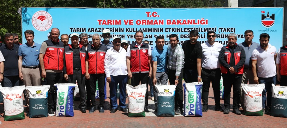 Bitkisel Üretim Genel Müdürlüğü’nün "Tarım Arazilerinin Kullanımının Etkinleştirilmesi (TAKE) Projesi" kapsamında, 14.237 dekar alanda soya ekimi için 141,5 ton tohum çiftçilere %75 hibe desteğiyle dağıtılıyor. Projenin toplam bütçesi 14.854.000 TL olup, Bakanlık katkısı 11.140.000 TL olarak belirlendi.