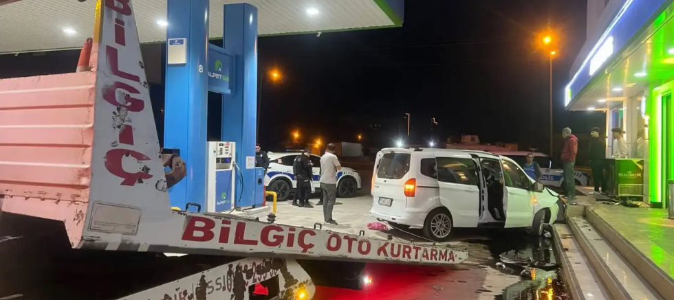 Kaza, Nusaybin ilçesi uluslararası İpekyolu üzerindeki Barış Petrol’de meydana geldi. Sürücüsünün ismi öğrenilemeyen 73 AAT 496 plakalı hafif ticari araç, virajı alamayarak akaryakıt istasyonuna daldı ve iş yerinin merdivenlerine çarparak durabildi. Kazada sürücü yaralandı. O anlar güvenlik kamerasına yansıdı.