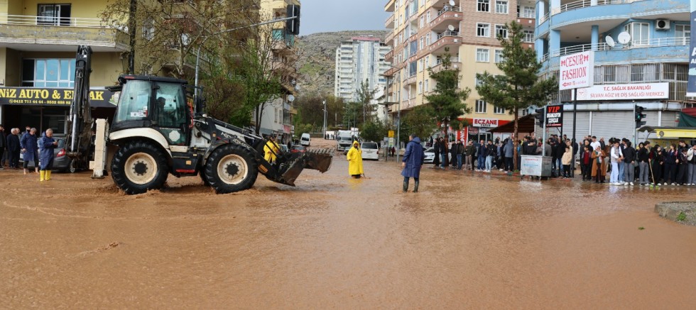 Belediye ekipleri ilçe genelinde su tahliye ve temizlik çalışmalarına başladı. İş makineleri ve itfaiye araçlarıyla yürütülen çalışmalarda, çamurla kaplanan cadde ve sokaklar temizleniyor.