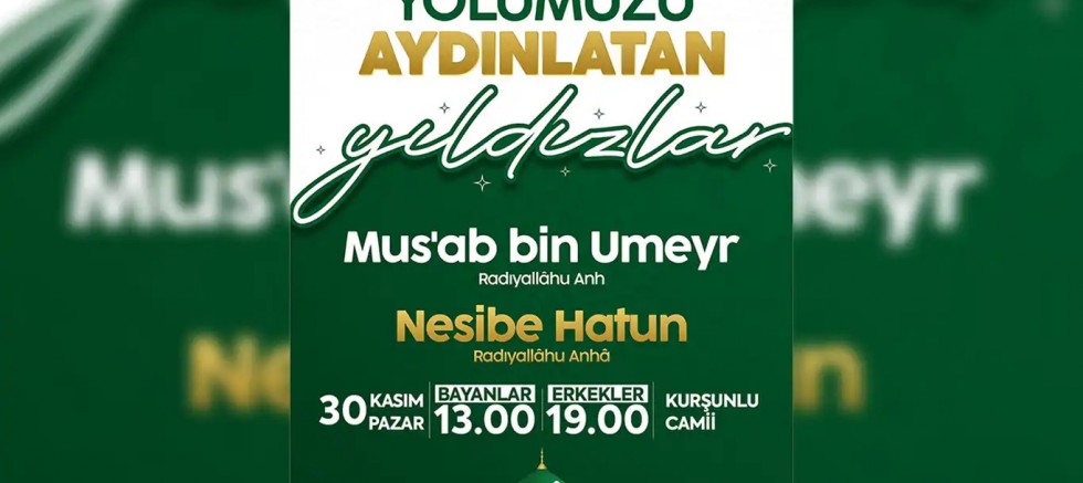 Kasım ayının sahabe ayı olması münasebetiyle yarın Kurşunlu Camii'nde erkek ve bayanlara özel iki ayrı program düzenleniyor. Bayanlara için saat 13.00'de gerçekleştirilecek programda Nesibe Hatun, erkekler için saat 19.00'da düzenlenecek programda ise Musab bin Umeyr anlatılacak.
