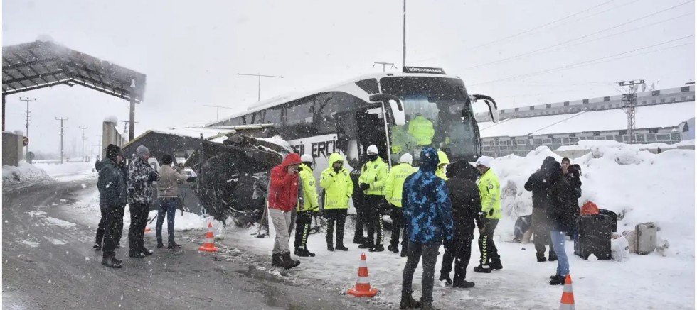 Kaza bugün saat 14.00 sıralarında Arıcılık mevkiinde meydana geldi. Casim Demir yönetimindeki 46 AEG 334 plakalı yolcu otobüsü, Arıcılık mevkisinde, kar yağışı nedeniyle sürücüsünün direksiyon hakimiyetini kaybetmesi sonucu kontrol noktasındaki polis kulübesine çarptı.